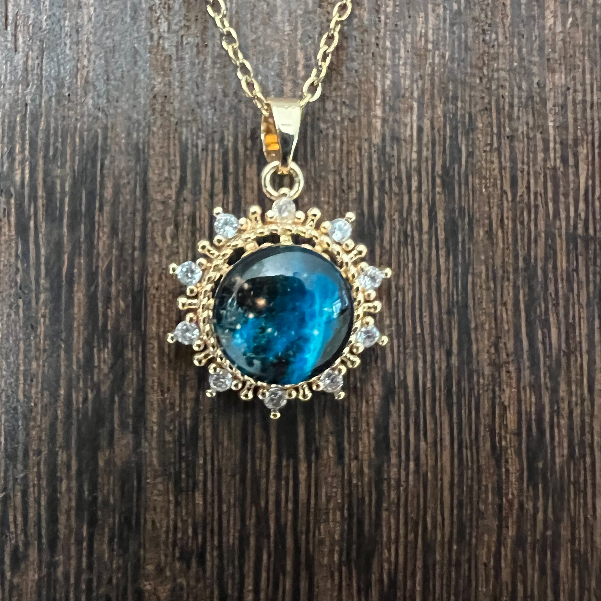 Elevate your spiritual journey with our Celestial Galaxy 18K Gold Plated Pendant, meticulously crafted to embody the essence of universal energy and manifestation.