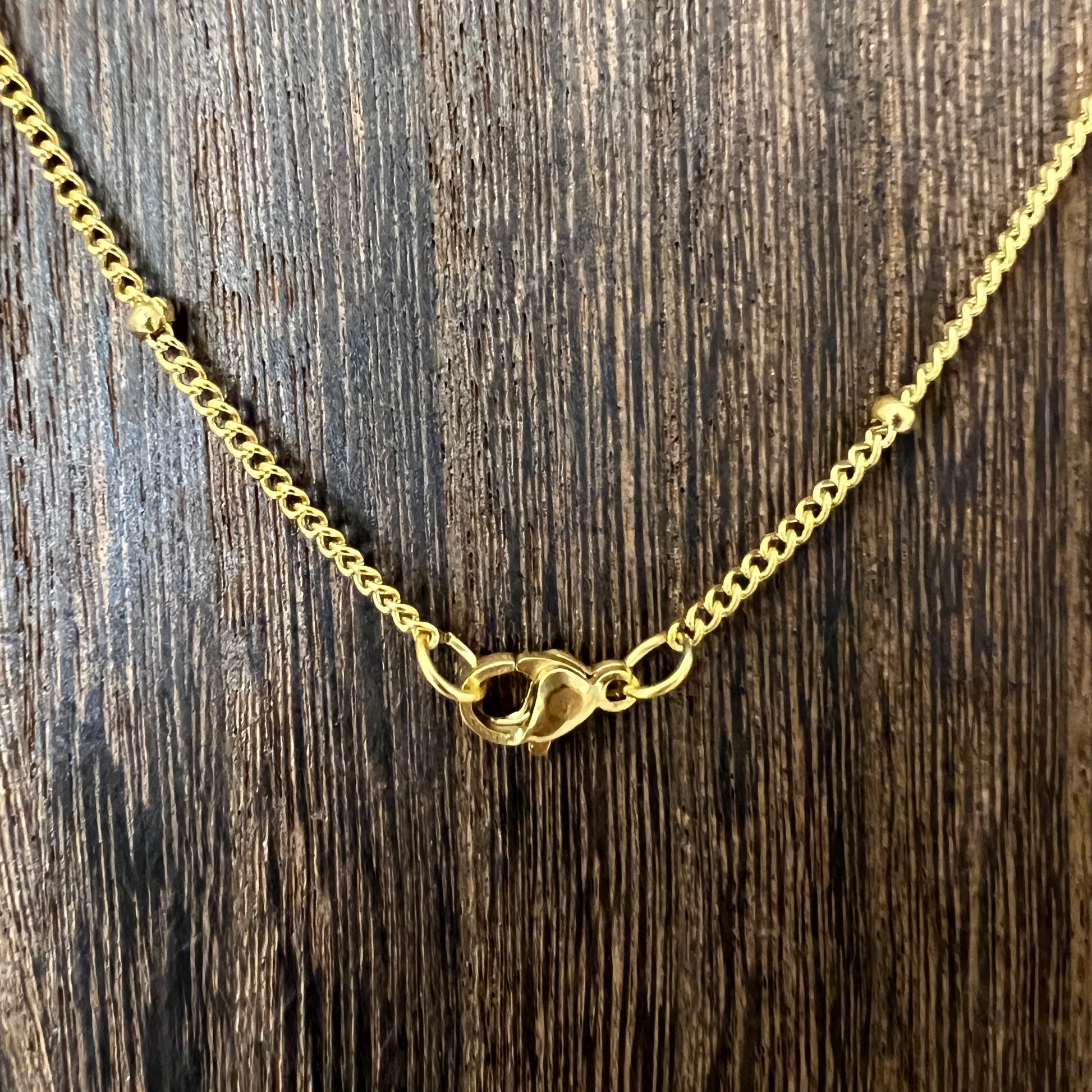 - 18-inch gold plated over stainless steel chain with lobster claw clasp