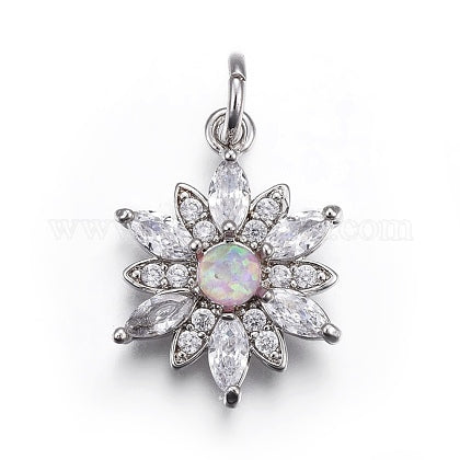 This stunning piece features intricate Micro Pave Cubic Zirconia Pendants with Synthetic Opal in a captivating flower design, set in Platinum and mixed colors.